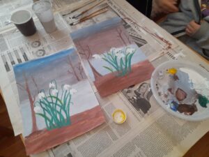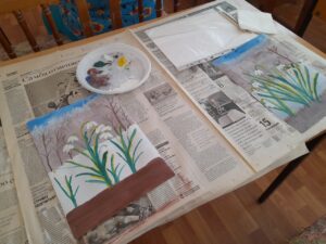 На мастер-классе участники прослушали рассказ о возникновении праздника – Дне подснежника, обсудили поэтический образ подснежников в литературе, а затем сделали эскиз этих первоцветов, раскрасили его акварельными или гуашевыми красками.