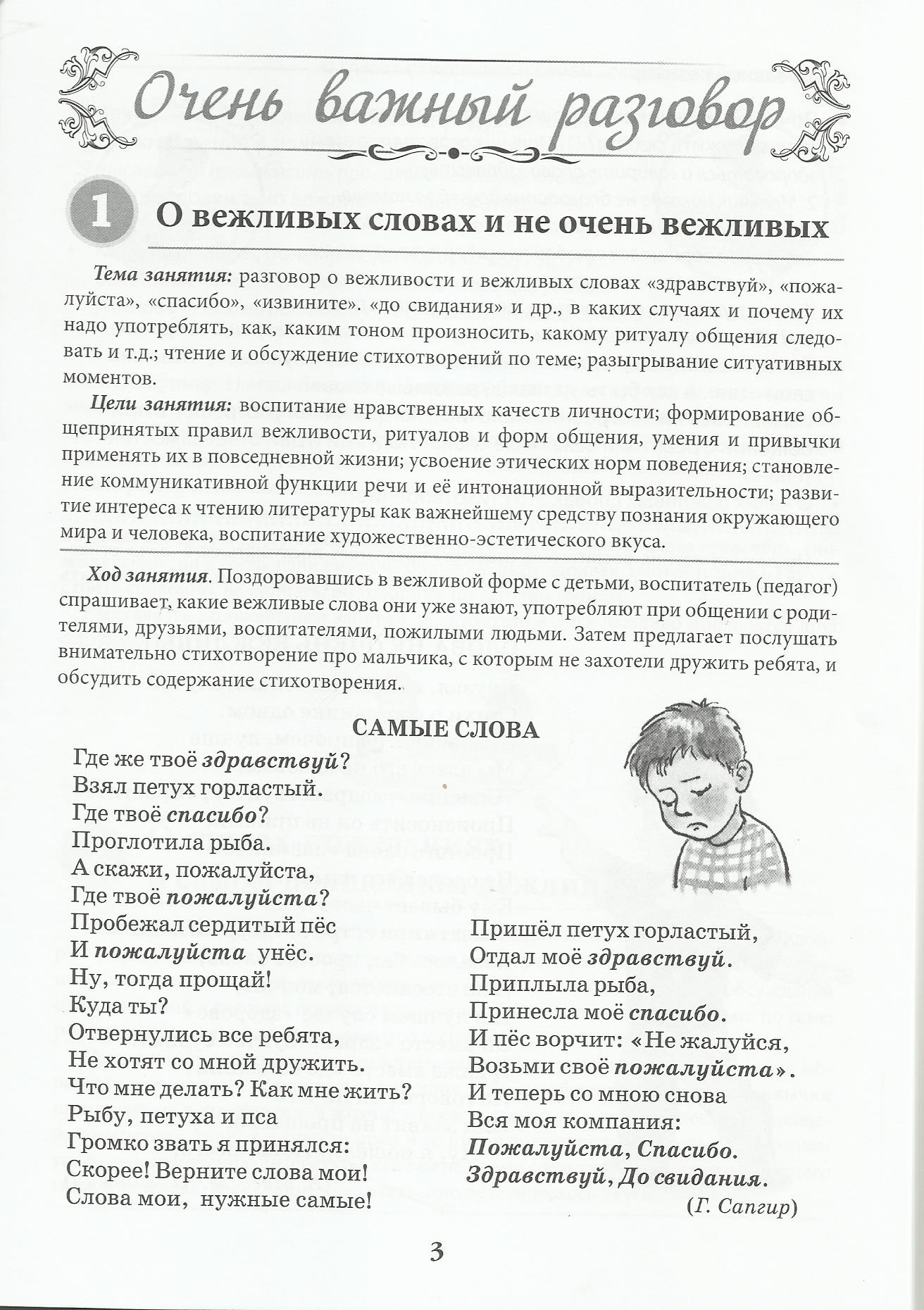 ДУРОВА Н.В. ОЧЕНЬ ВАЖНЫЙ РАЗГОВОР… Конспект занятий по обучению детей этике и этикету: методические рекомендации, тематические рассказы и стихи, вопросы для обсуждения, контрольные ситуативные текст-задания.- М.: Школьная Книга, 2024.- 64 с.: ил.