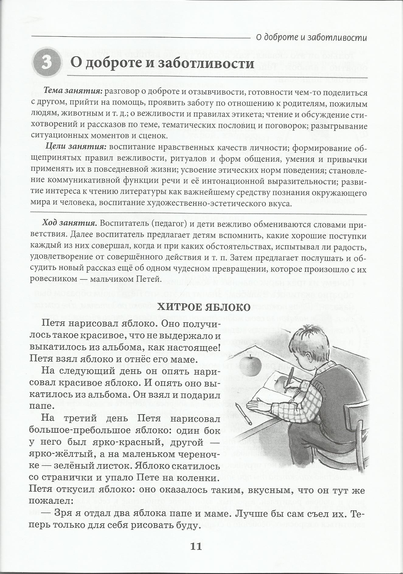 Содержит тематические стихи и рассказы об этике и нормах поведения (о вежливости и доброте, дружбе и взаимопомощи, внимательности и неравнодушии к окружающим, заботе и уважении к сверстникам, взрослым или старикам, способности откликнуться на чужую беду и прийти на помощь в разных житейских ситуациях и т.д.), которые важно сформировать у детей с ранних лет.