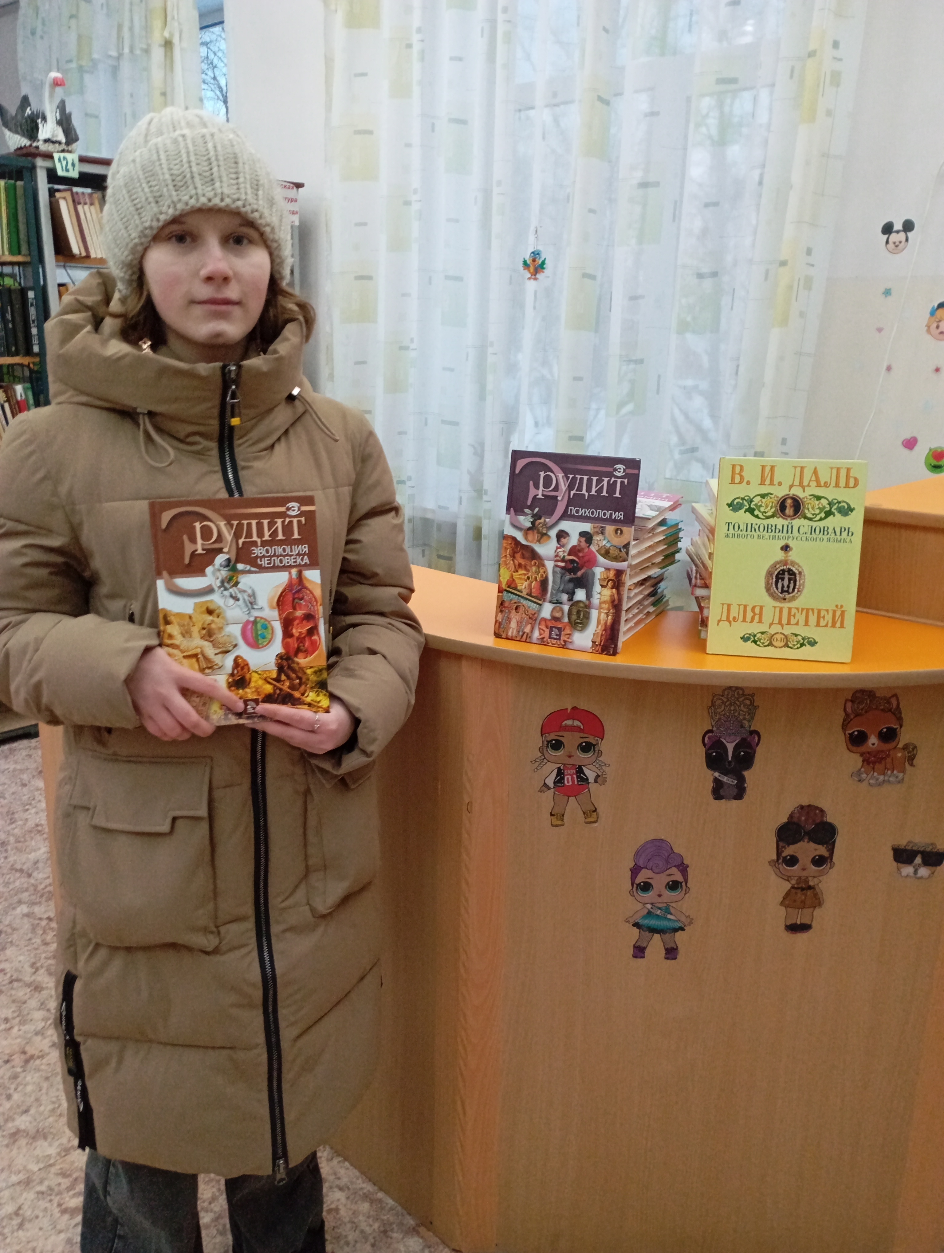 На фото наша читательница Толокнова Аня, которая подарила библиотеке замечательные книги: 10-томный словарь В.И.Даля и серию энциклопедий «Эрудит». Выражаем благодарность Ане и её родителям за великолепный подарок!