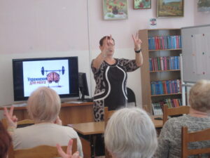Для более продуктивной работы перед мозговой прокачкой все выполнили пальчиковую гимнастику. На первый взгляд, она казалась легкой, но, прорабатывая некоторые упражнения, порой возникали трудности. Это говорит о том, что с возрастом наш мозг работает, не так активно, как в детстве. Чтобы избежать различных последствий, например, болезнь Альцгеймера, нужно ежедневно работать над его тренировкой. Поэтому решение логических загадок – очень полезное занятие.