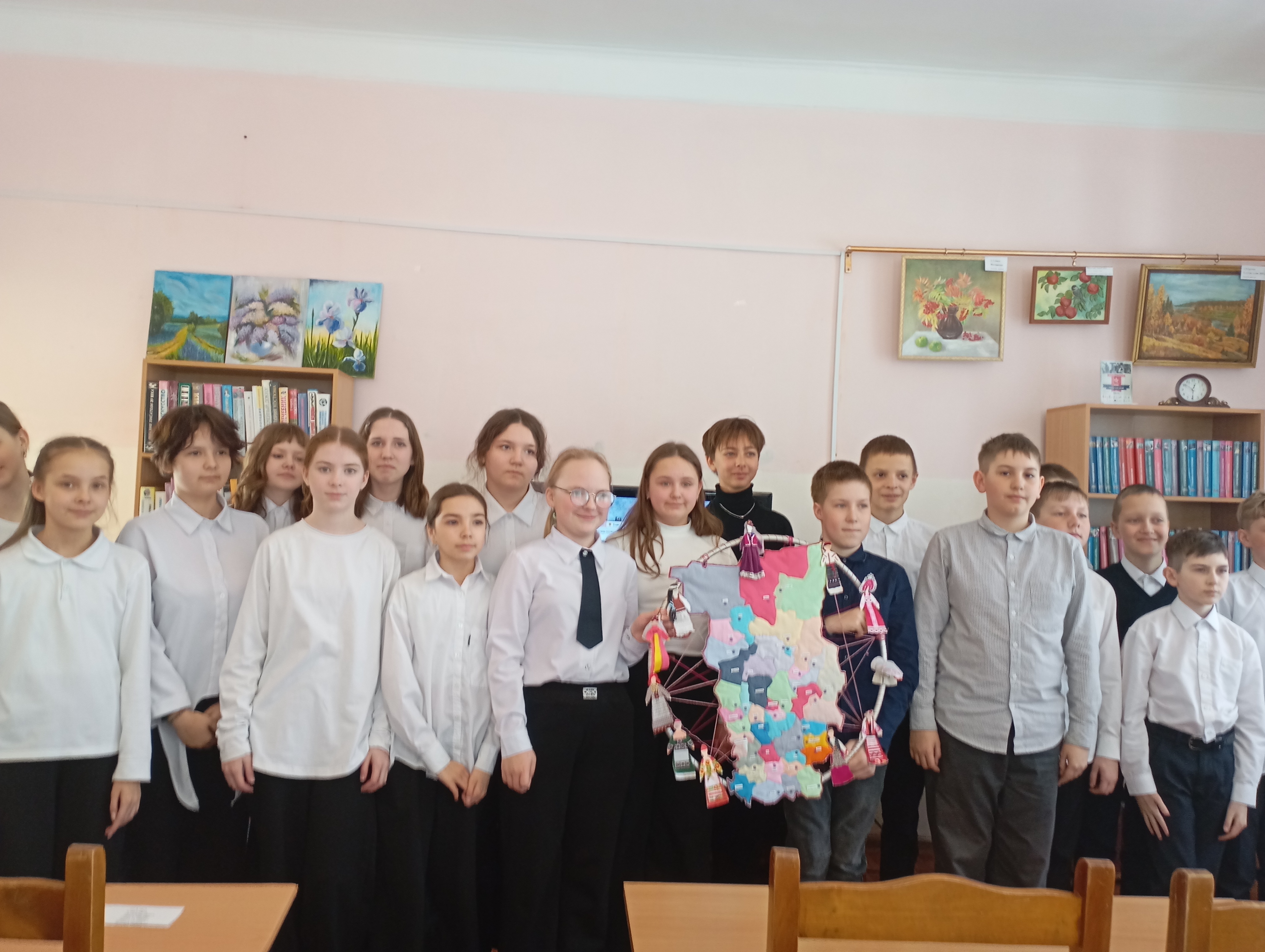 В рамках Года единства народов России на детском абонементе Александровской центральной городской библиотеки прошёл краеведческий час «Единый народ — единая страна» для учащихся 5 «А» класса школы №1 (кл. руководитель Пластеева С.С).