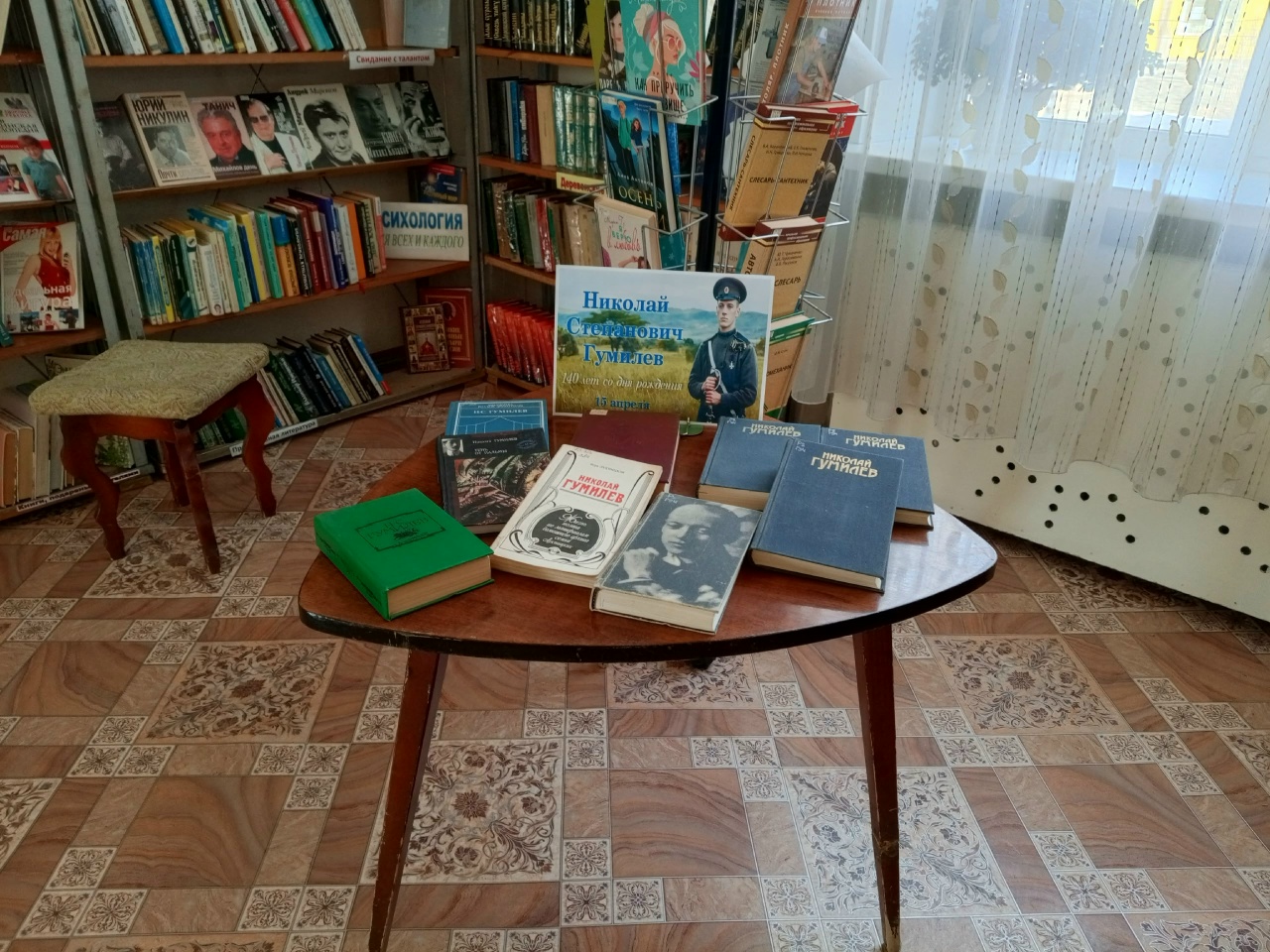 К 140-летию Николая Степановича Гумилёва оформлен тематический столик.
