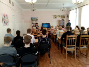 В преддверии праздника Дня пожарной охраны России в Центральной городской библиотеке прошёл час общения «Пожарные идут туда, откуда все бегут» для слушателей клуба «ЛАДА» и учащихся 8 «Б» класса школы №1.