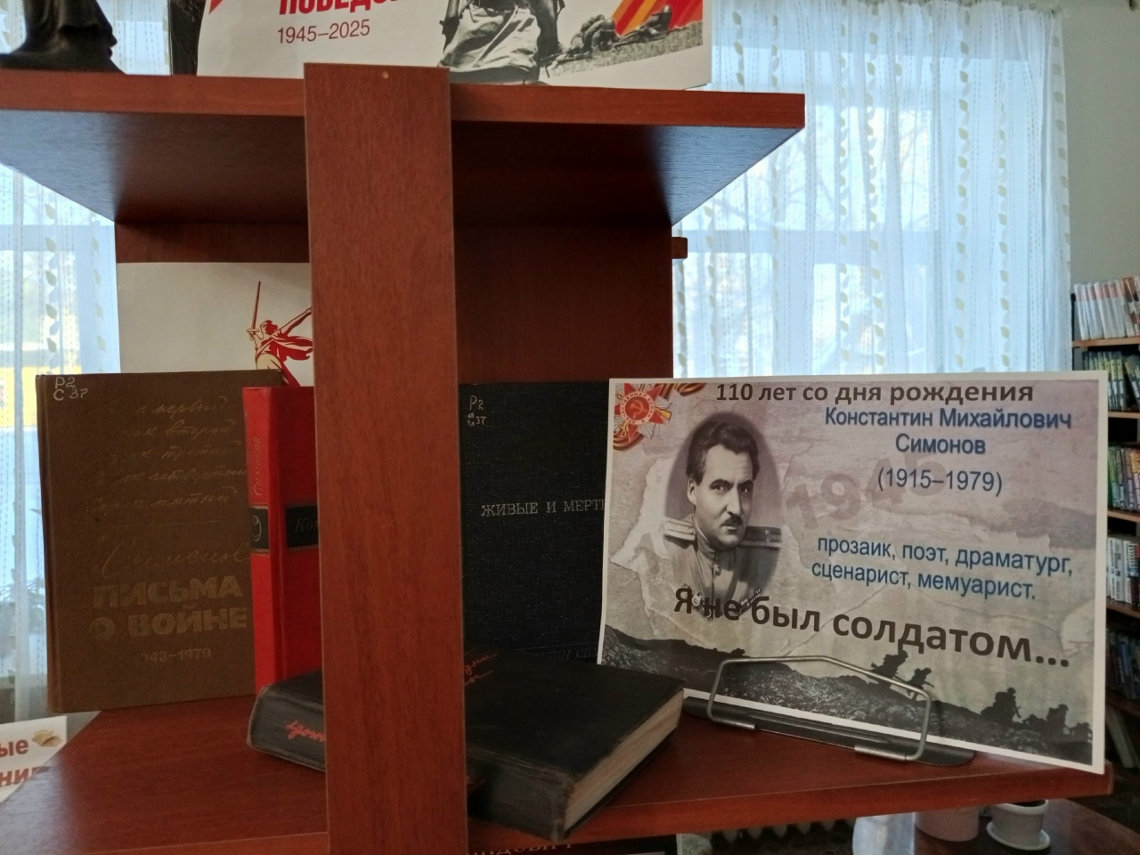 В Центральной городской библиотеке открылась внутриполочная выставка «Я не был солдатом…», приуроченная к 110-летнему юбилею известного отечественного поэта, прозаика, драматурга, публициста К.М. Симонова. Читать далее